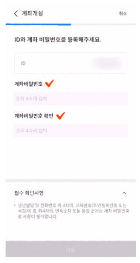7. 계좌 기본 정보 입력 후, 계좌 ID와 비밀번호 입력하기