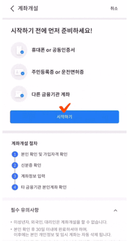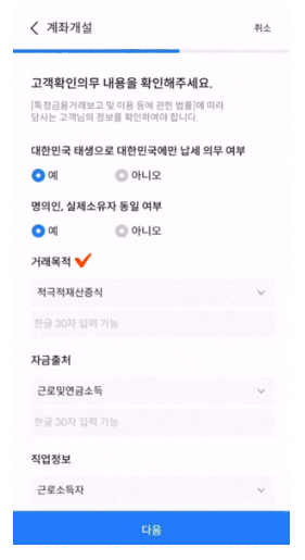 8. 고객 확인 의무 내용 확인 후, 거래 목적 입력하기