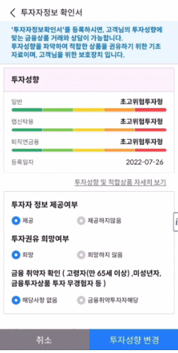 9. 투자 정보 제공 범위 선택 후, 투자 성향 정보 입력하기