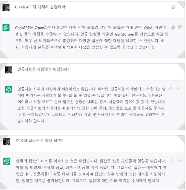 예전에도 인공지능과 채팅하는 기능은 있었지만 ChatGPT 서비스는 어색하지 않게 인터넷의 모든 정보를 수집하여 분석하고 문제에 대한 해결책까지 다양한 지식과 정보를 바탕으로 끊임없이 제공합니다.